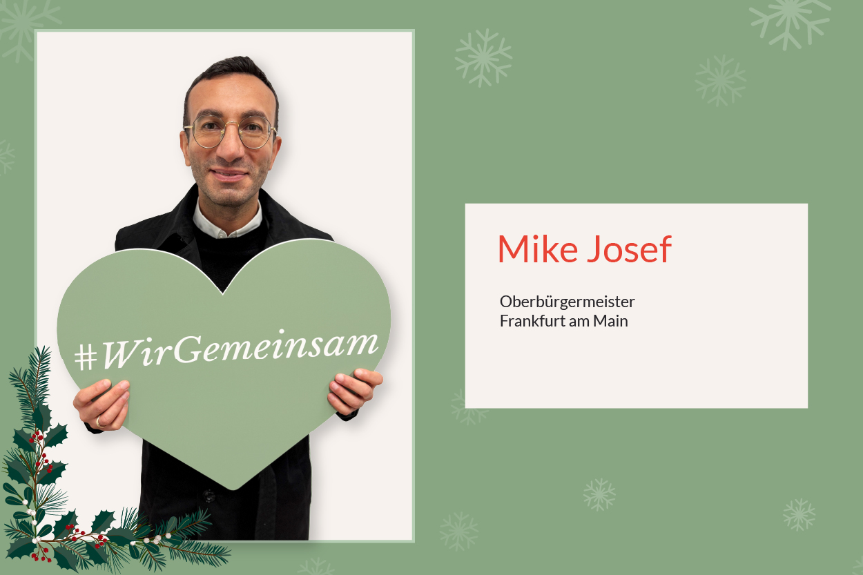 Das Ehrenamt ist für mich das Herz unserer Stadt. Es verbindet Menschen, stärkt das Miteinander und macht Frankfurt menschlicher. Viele Feste, Begegnungen und Initiativen wären ohne die unermüdliche Arbeit der Ehrenamtlichen gar nicht denkbar. Mein Weihnachtswunsch ist deshalb klar: Lassen Sie uns dieses Engagement weiter sichtbar machen, wertschätzen und fördern – denn „Wir Gemeinsam“ heißt in Frankfurt vor allem eins: füreinander da sein.