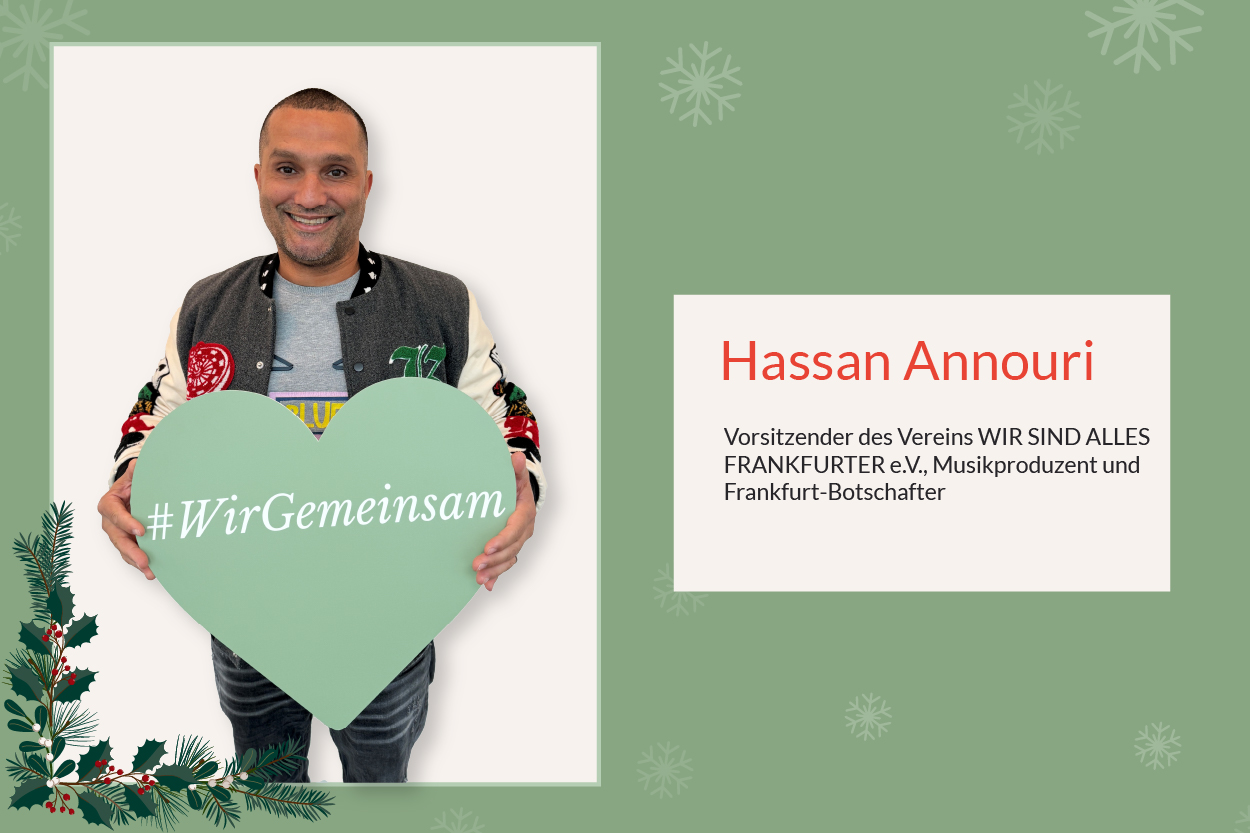 Ich bin Hassan Annouri, und für mich bedeutet Frankfurt mehr als nur Skyline und Banken. Es bedeutet Menschen aus über 180 Nationen, die jeden Tag zeigen, was wir gemeinsam schaffen können: Respekt, Offenheit und gegenseitige Unterstützung. Das sind die Werte, die mir wichtig sind. Sie machen aus Nachbarn Freunde und aus Fremden eine Gemeinschaft.